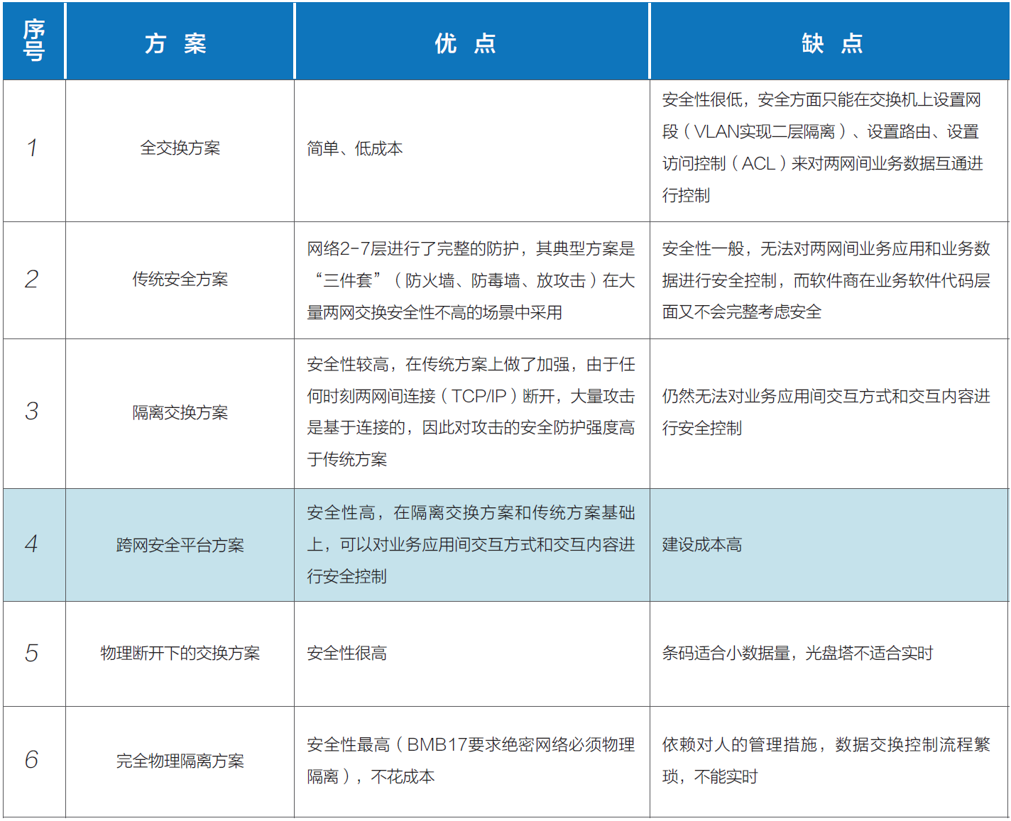 该方案是采用传统的网络安全防护措施(FW\VPN\AV\AC\IPS等)来实现两网间数据互通。